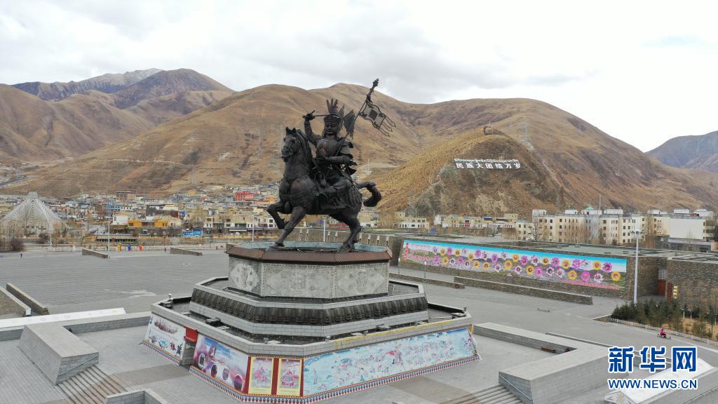 這是青海省玉樹藏族自治州玉樹市格薩爾王廣場(3月10日攝,無人機(jī)照片)。