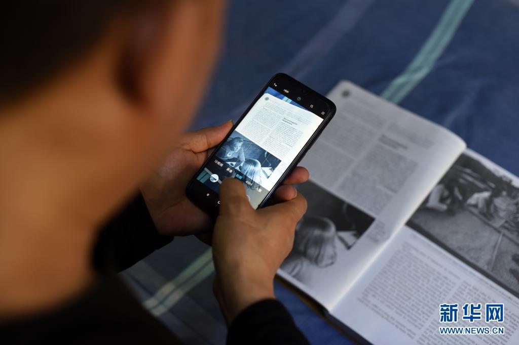 包珍妮無法正常閱讀紙質(zhì)書籍,父親包宗鋒將書的內(nèi)容分頁拍照供她在電腦上學(xué)習(xí)(4月14日攝)。