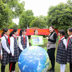 4月19日,老師在 “森林小課堂”上給學生們講述地球的板塊構造。
