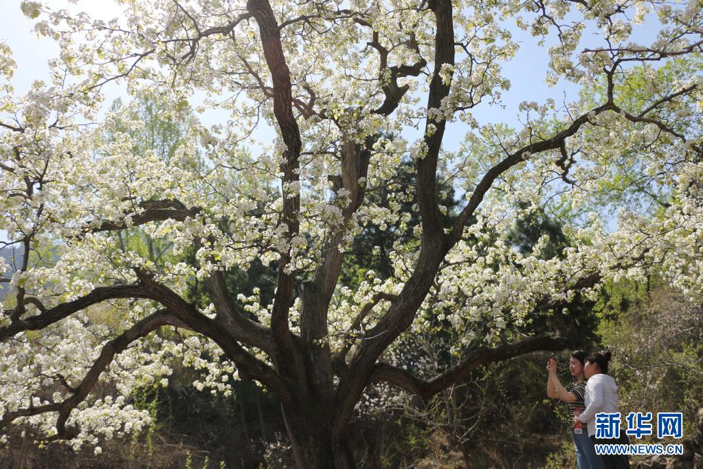 4月19日,游人在河北省承德縣新杖子鎮(zhèn)葦子峪村的梨園內(nèi)賞花。