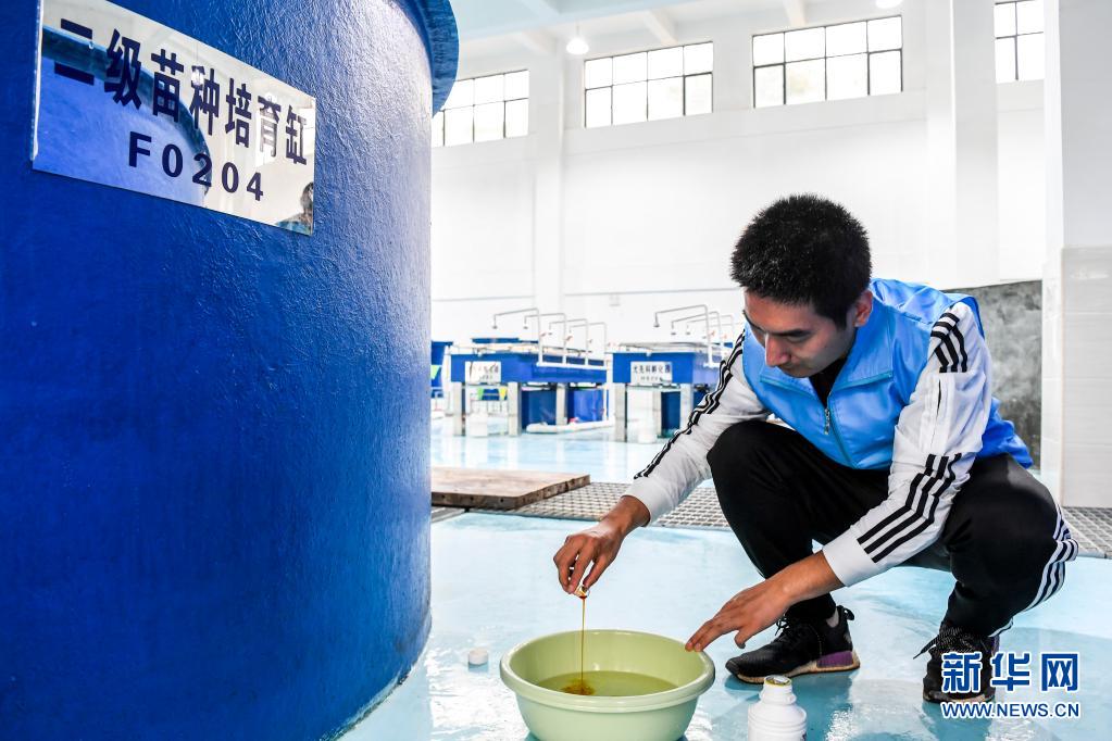 4月20日,大藤峽魚類增殖放流站的工作人員在配制營養(yǎng)液。
