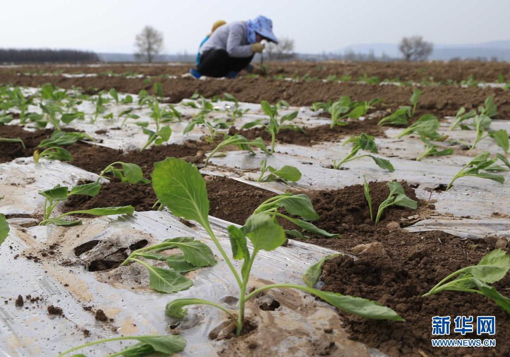 ?4月20日,甘肅省定西市安定區(qū)香泉鎮(zhèn)農(nóng)民在移栽甘藍(lán)苗。