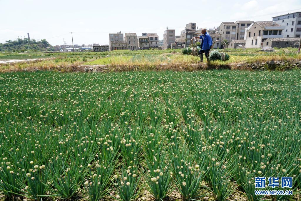 4月20日,浙江省樂清市雁蕩鎮(zhèn)的香蔥種植專業(yè)合作社社員在挑運(yùn)剛采摘的香蔥。