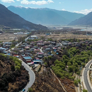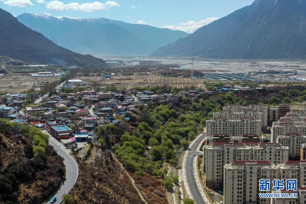 這是西藏林芝市巴宜區(qū)巴吉村(畫面左側(cè))及毗鄰的八一鎮(zhèn)(4月6日攝,無人機(jī)照片)。新華社記者 洛卓嘉措 攝