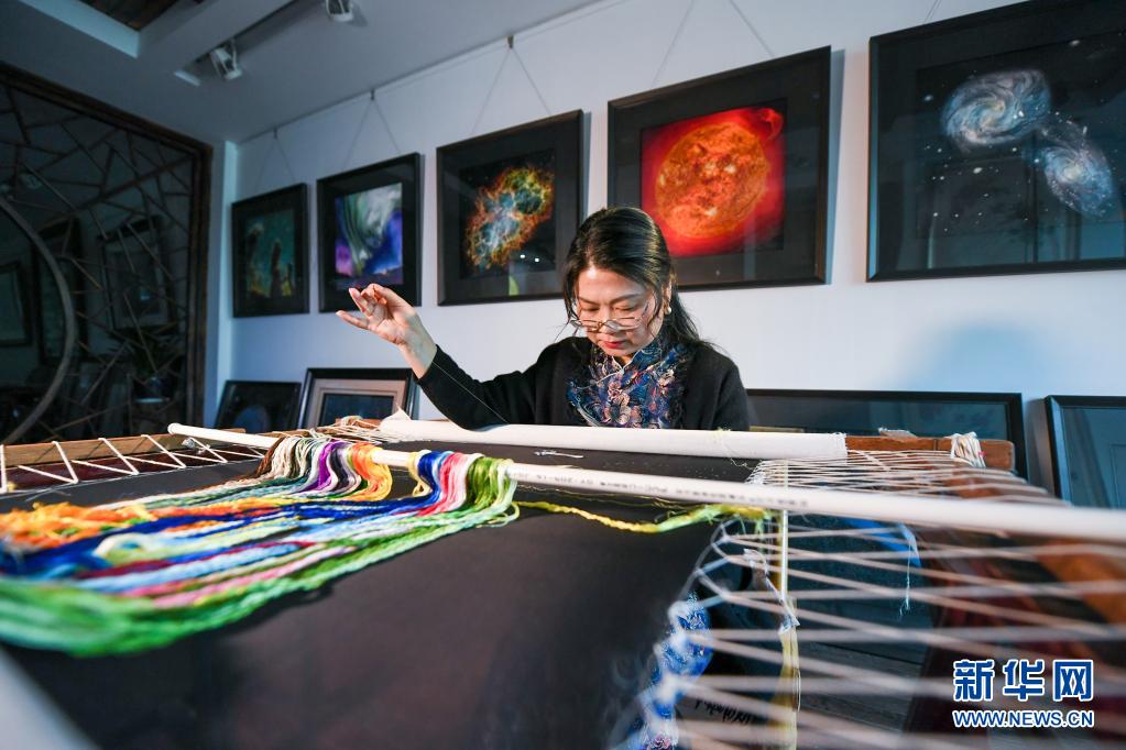 陳英華在位于蘇州高新區(qū)鎮(zhèn)湖街道的蘇繡工作室內(nèi)刺繡(4月14日攝)。新華社記者 李博 攝
