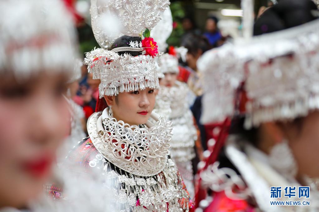 今年姊妹節(jié)前夕,母親張元英把女兒盛裝的銀飾拿到銀飾店里進行清洗,希望女兒能在盛裝巡演上展示最美的一面。4月25日姊妹節(jié)當天,張佳麗早早起床,在母親和同學的幫助下,開始化妝、穿衣、佩戴銀飾,一直忙到9點才準備完畢。身著盛裝站在巡演隊伍中,張佳麗說:“這是我們苗族同胞最大的節(jié)日,無論身處何地,我都會如約回家參加活動!”