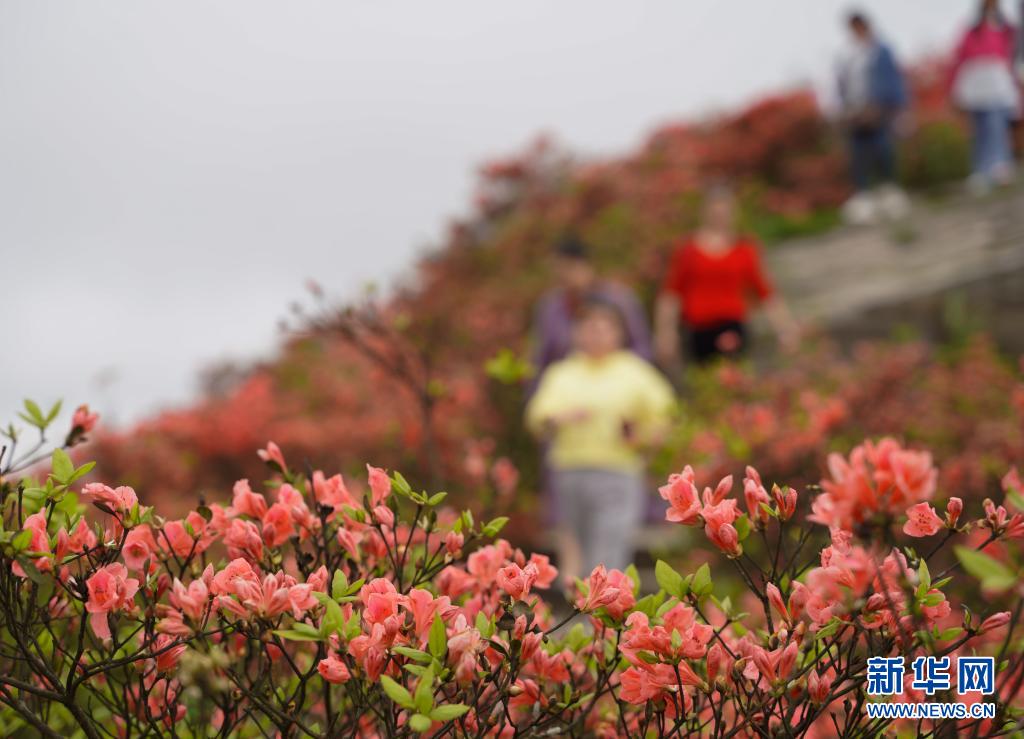 4月26日,游人在貴州省黔東南苗族侗族自治州丹寨縣龍泉山景區(qū)賞花。近日,各地鮮花盛開(kāi),吸引人們走出家門踏青賞花。新華社發(fā)(楊武魁 攝)