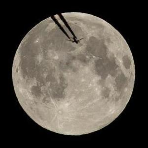 4月27日,一架飛機(jī)“飛過”法國巴黎上空的“超級(jí)月亮”(拼版照片)。新華社發(fā)(奧雷利安·莫里薩爾攝)