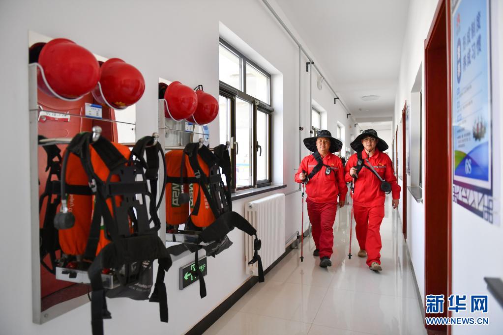 4月28日,巡線隊員侯勵峰、曹碩(右)從住地出發(fā)準備開始巡線。新華社記者 張博文 攝