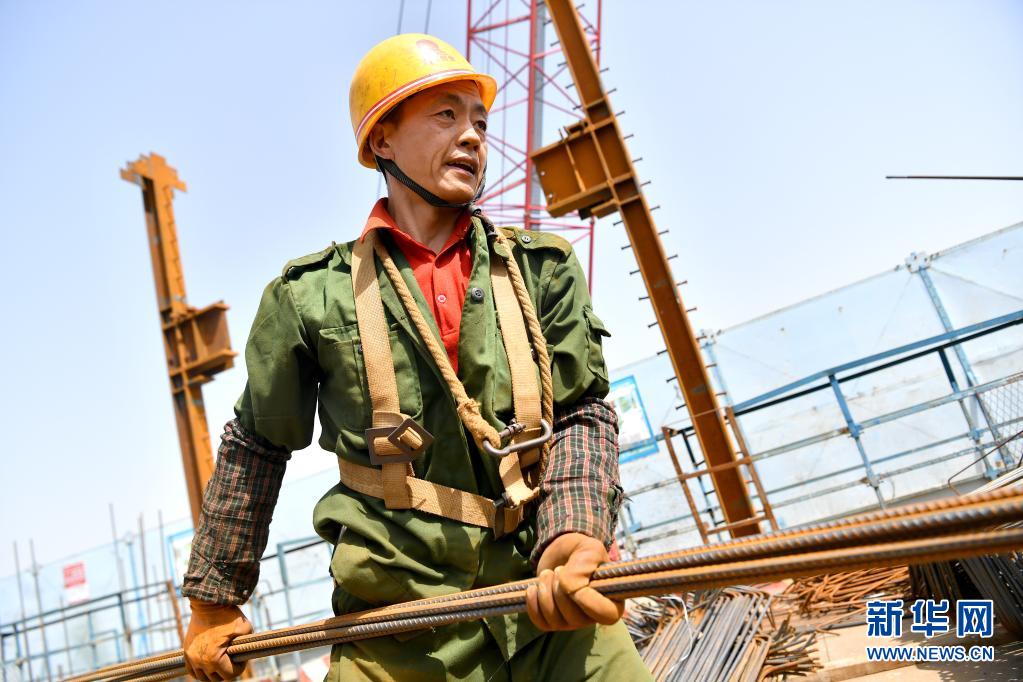 5月1日,在陜西西安未央?yún)^(qū)一項目施工現(xiàn)場,中建七局四公司的工作人員在作業(yè)。