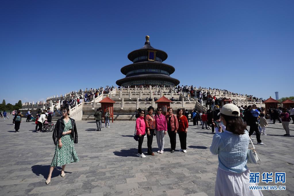 “五一”期間,許多游客來(lái)到北京天壇公園參觀游覽,樂(lè)享假期生活。