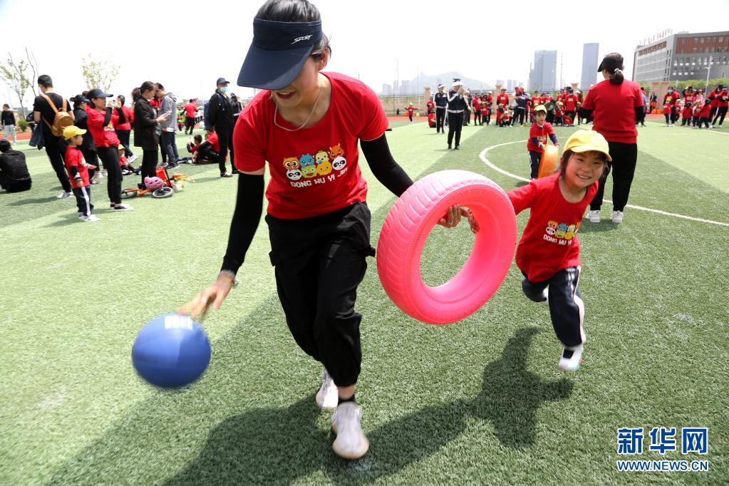 5月9日,在江蘇連云港一所幼兒園的母親節(jié)親子活動(dòng)中,一名小朋友和母親一起參加比賽。