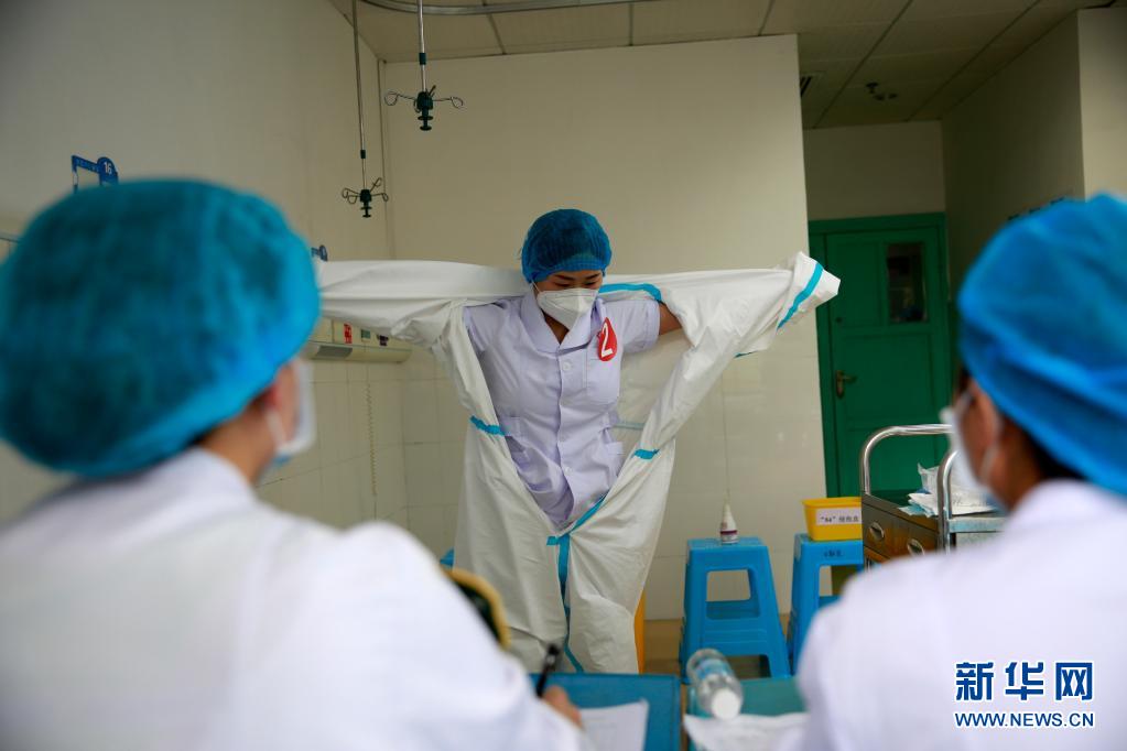 5月11日,貴州省黔東南苗族侗族自治州劍河縣人民醫(yī)院的護士在進行護理技能操作競賽。