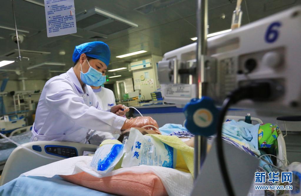 5月11日,在貴州省畢節(jié)市第一人民醫(yī)院重癥醫(yī)學科病房,一名護士對患者進行護理。
