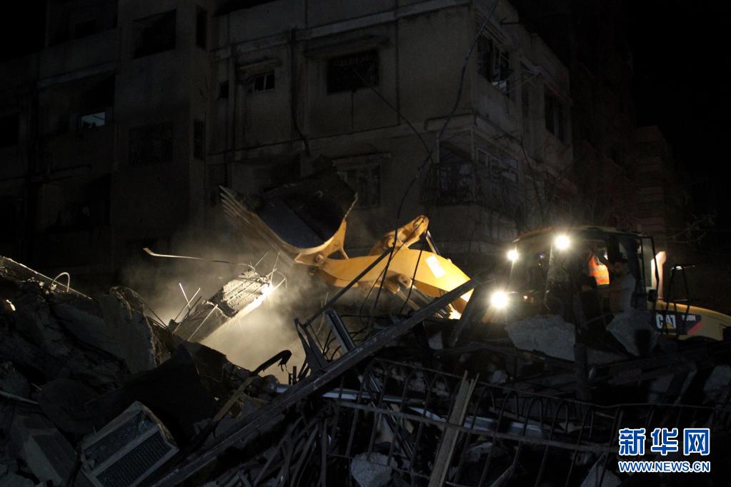 5月15日,救援人員在加沙城的空襲廢墟中搜救。
