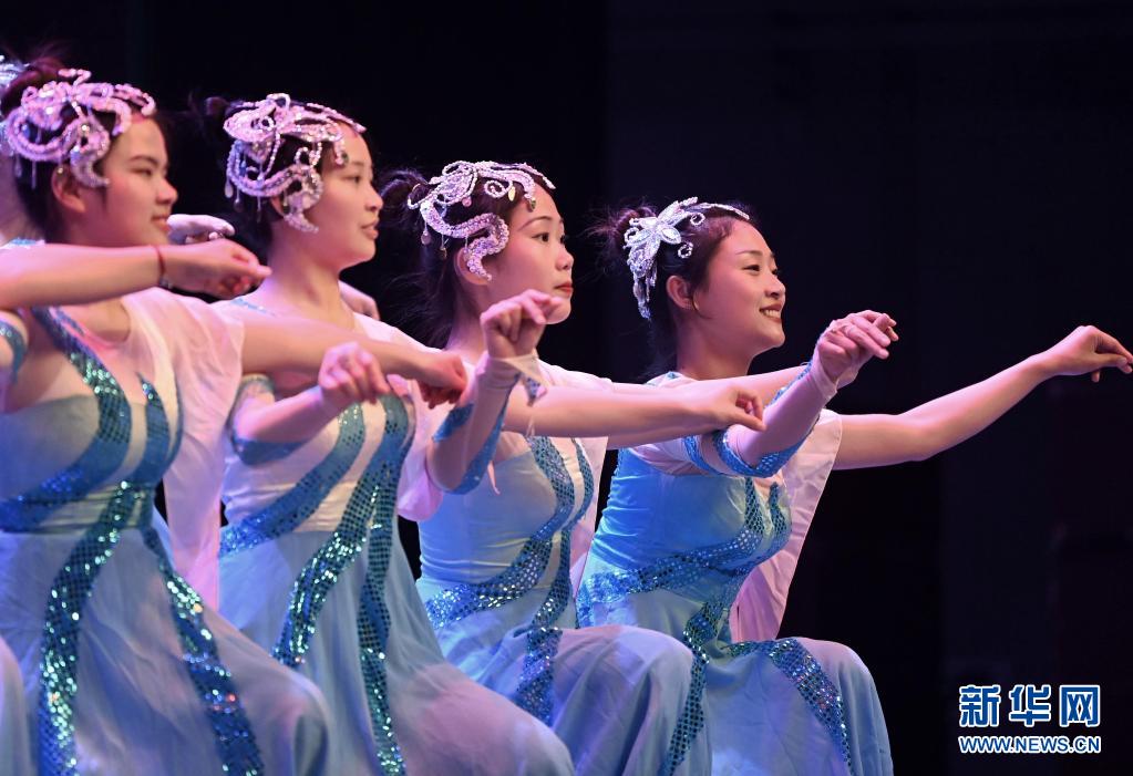 天津理工大學(xué)聾人工學(xué)院的舞蹈隊員們在學(xué)校的劇場里彩排(5月10日攝)。新華社記者 李然 攝