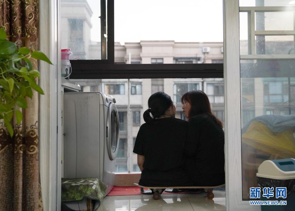 2021年5月10日,蔣張子怡(左)在家中和母親聊天。