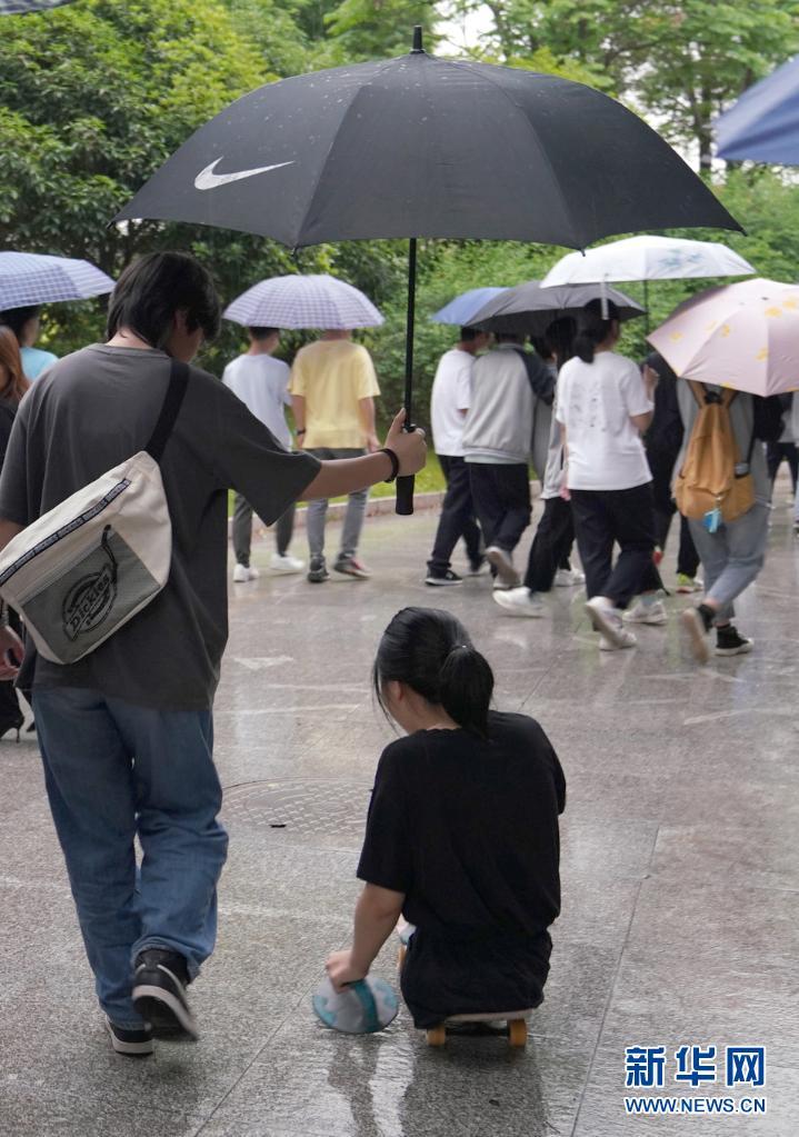 2021年5月10日,蔣張子怡在雨天行動(dòng)不便,同學(xué)撐傘替她擋雨。