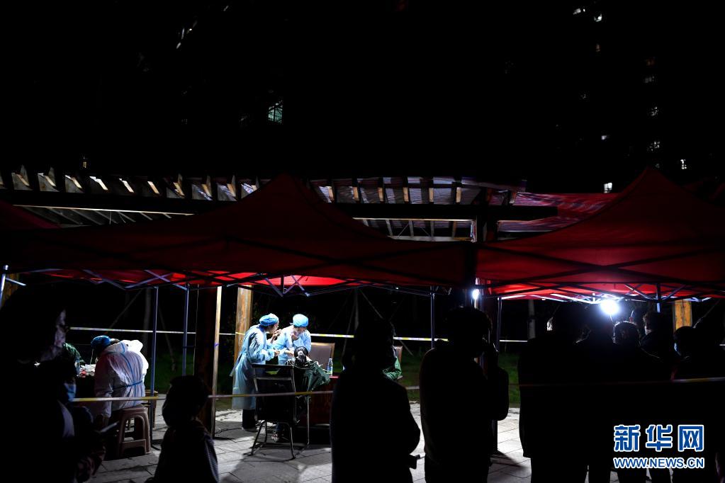 5月16日晚,安徽省合肥市肥西縣上派鎮(zhèn)多個小區(qū)啟動第二輪全員新冠肺炎疫情核酸檢測。檢測人員和社區(qū)工作者深夜值守,奮戰(zhàn)在疫情防控一線。