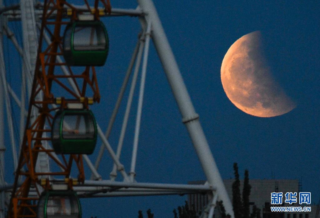 當(dāng)日,本年度“最大最圓月(也稱‘超級(jí)月亮’)”與月全食(也稱“紅月亮”)浪漫“邂逅”。