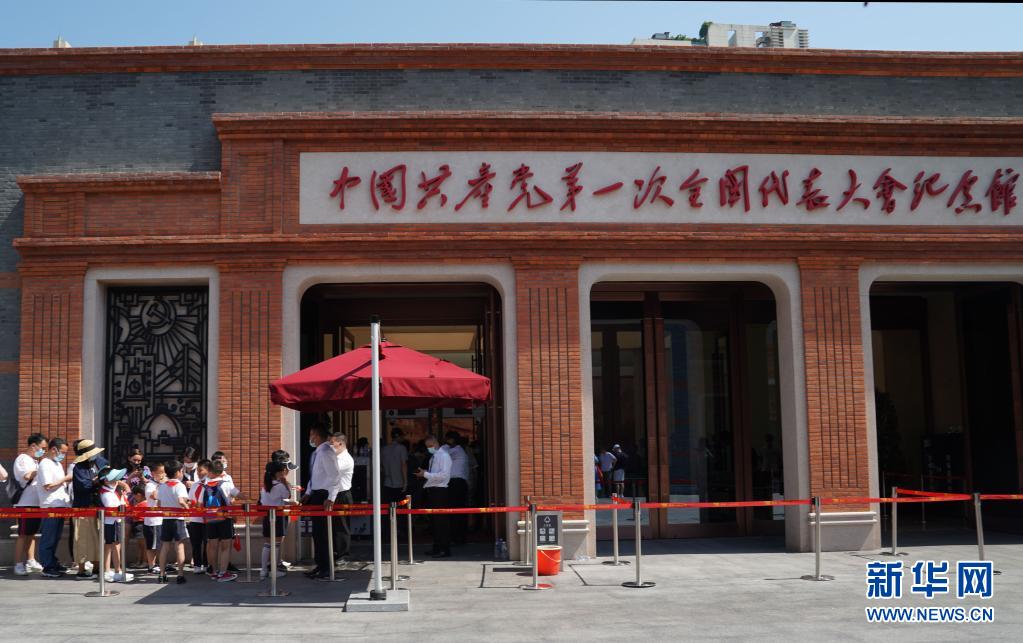 6月6日,人們?cè)谥泄惨淮蠹o(jì)念館前排隊(duì)等待參觀。6月5日、6日是中共一大紀(jì)念館開館后的首個(gè)周末,紀(jì)念館迎來(lái)參觀熱潮。觀眾紛紛前來(lái)參觀“偉大的開端——中國(guó)共產(chǎn)黨創(chuàng)建歷史陳列”,了解黨的創(chuàng)建歷程。中共一大紀(jì)念館實(shí)行實(shí)名制、全預(yù)約參觀。新華社記者 劉穎 攝
