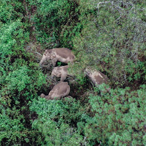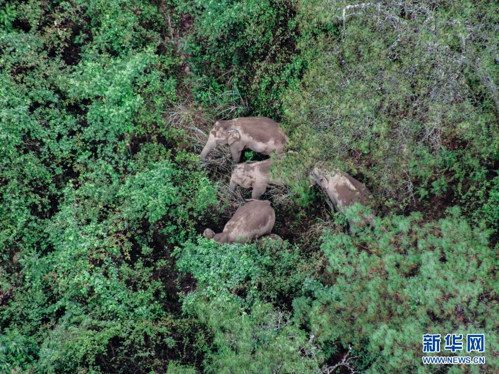 6月5日在云南省昆明市晉寧區(qū)拍攝的野象(無人機(jī)照片)。