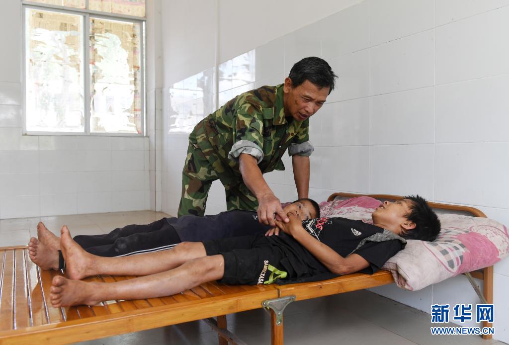 在廣西上思縣那琴鄉(xiāng)中心小學逢通村教學點,梁志雄老師在照顧兩名學生睡午覺(6月16日攝)。新華社記者 陸波岸 攝