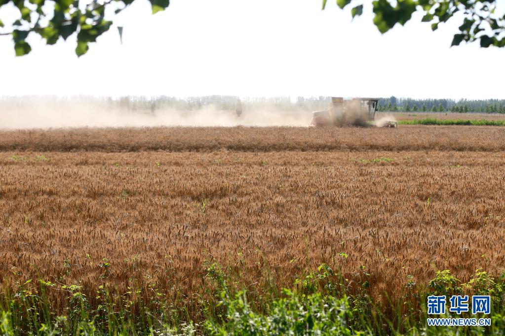 6月20日,收割機在山東省青島市即墨區(qū)段泊嵐鎮(zhèn)姜家坡村的麥田內作業(yè)。