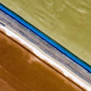 6月21日,中鹽宏達(dá)鹽業(yè)的工人在新疆和布克賽爾蒙古自治縣瑪納斯鹽湖中采鹽。