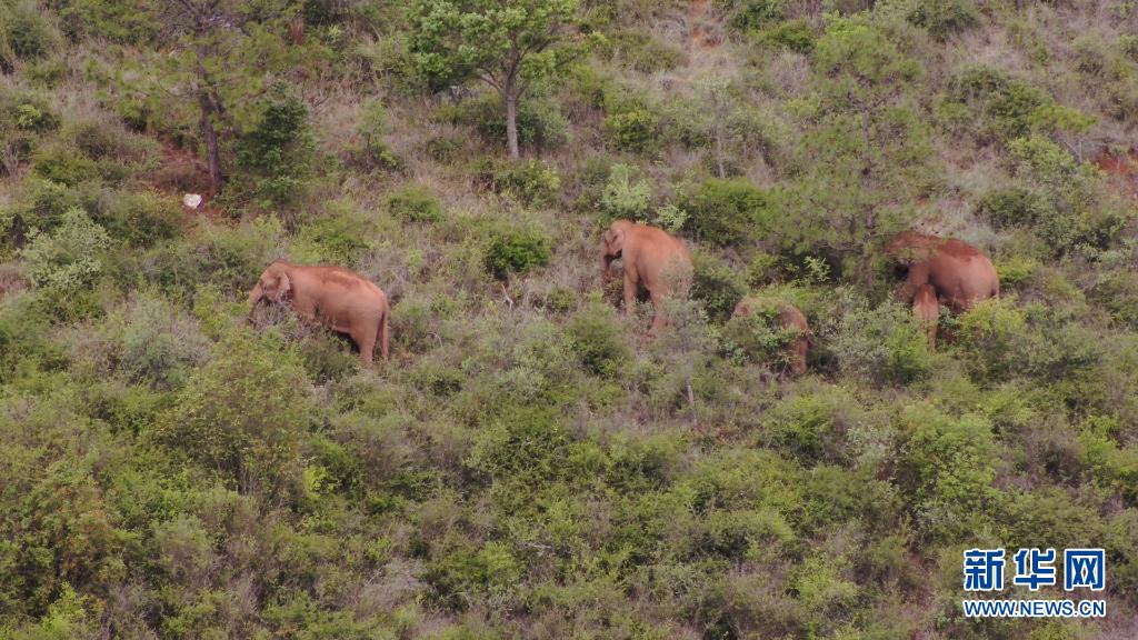 6月22日在云南省玉溪市峨山縣大龍?zhí)多l(xiāng)附近拍攝的象群(無人機(jī)視頻截圖)。