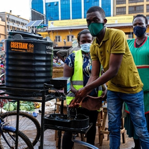 6月23日,一名男子在進入烏干達坎帕拉的納卡塞羅市場前洗手。