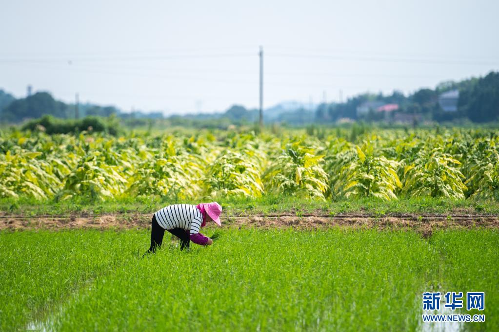 6月26日,湖南瀏陽(yáng)龍伏鎮(zhèn)新開(kāi)村村民在田間除草。