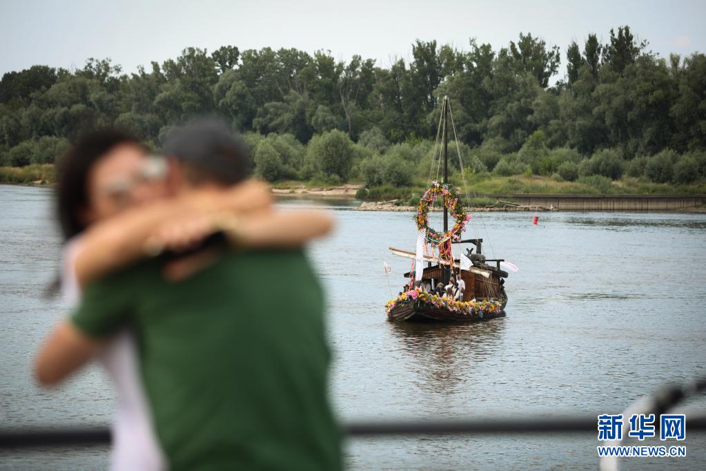 6月26日,波蘭首都華沙舉行傳統(tǒng)的夏日文化娛樂活動(dòng)時(shí),一對情侶在河邊擁抱。