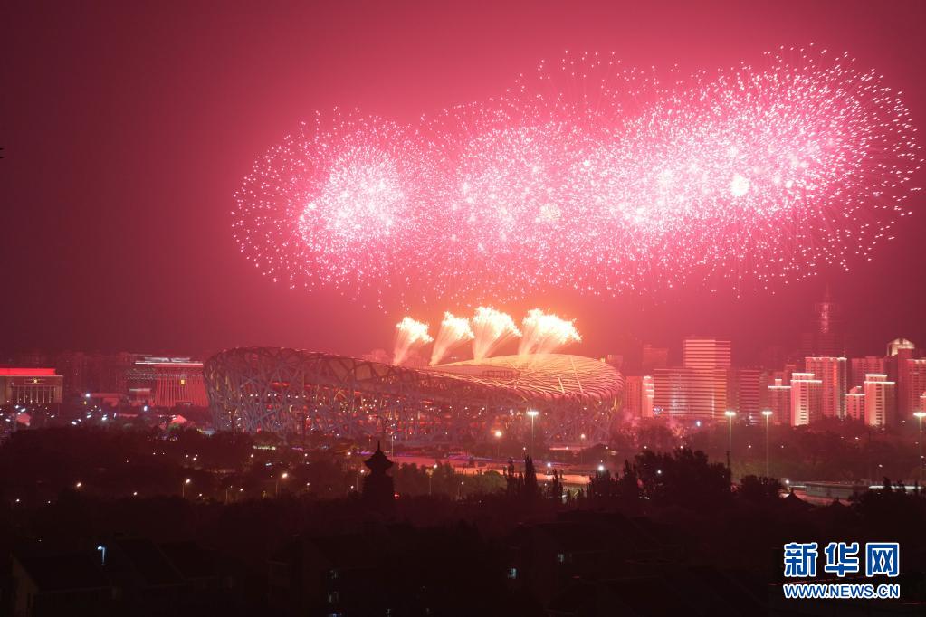 6月28日晚,慶祝中國共產(chǎn)黨成立100周年文藝演出《偉大征程》在國家體育場盛大舉行。這是焰火盛放在國家體育場上空。新華社記者 鞠煥宗 攝