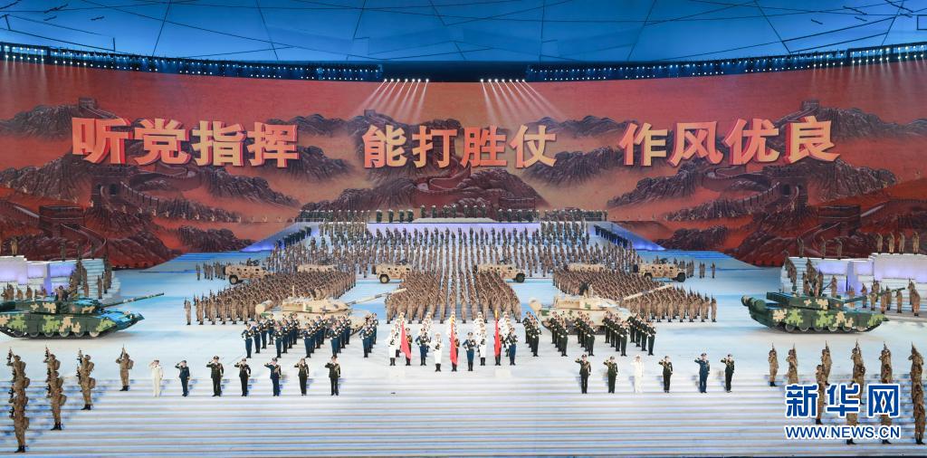 6月28日晚,慶祝中國(guó)共產(chǎn)黨成立100周年文藝演出《偉大征程》在北京國(guó)家體育場(chǎng)盛大舉行。這是情景歌舞《強(qiáng)軍戰(zhàn)歌》。