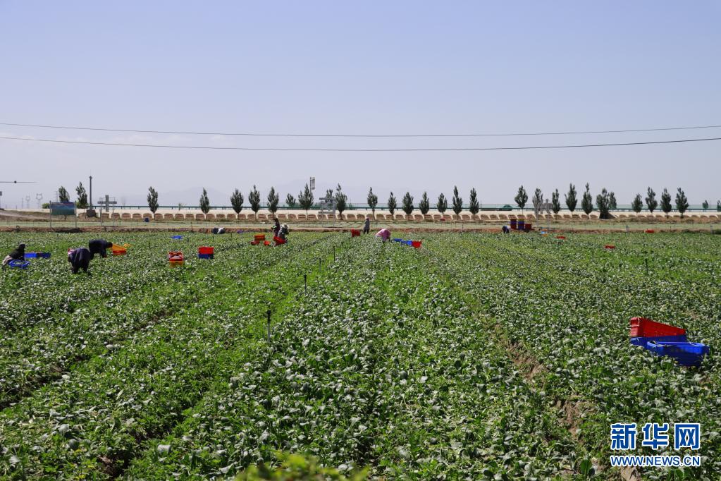 7月4日,在甘肅省張掖市甘州區(qū)烏江鎮(zhèn)供港蔬菜基地,當(dāng)?shù)厝罕娫诓烧卟恕?/p>
