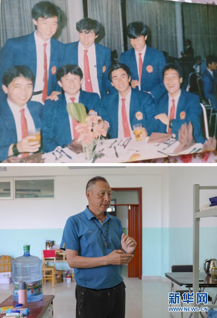 這是一張拼版照片:上圖為20世紀(jì)80年代杜寶柱(后排中)參加國(guó)際比賽時(shí)和隊(duì)員們的合影(受訪者供圖);下圖為杜寶柱教練在塔城市第二小學(xué)宿舍內(nèi)整理裝備,準(zhǔn)備出門帶隊(duì)訓(xùn)練(6月12日攝,新華社記者 胡虎虎 攝)。