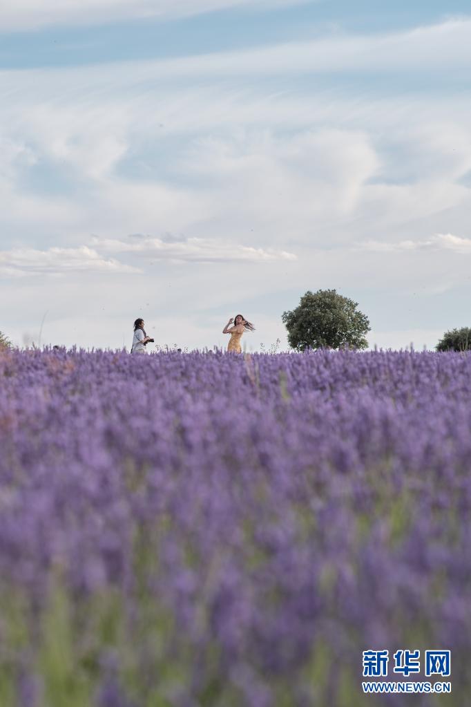 7月13日,人們?cè)谖靼嘌揽ㄋ沟倮麃?拉曼查自治區(qū)布里韋加的薰衣草田游玩。
