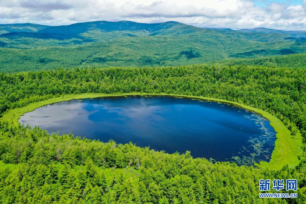 這是7月14日拍攝的阿爾山國家森林公園內的天池(無人機照片)。