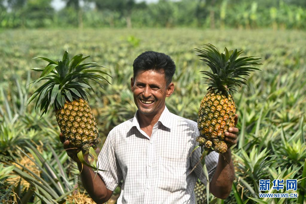 7月25日,一名男子在孟加拉國坦蓋爾展示收獲的菠蘿。