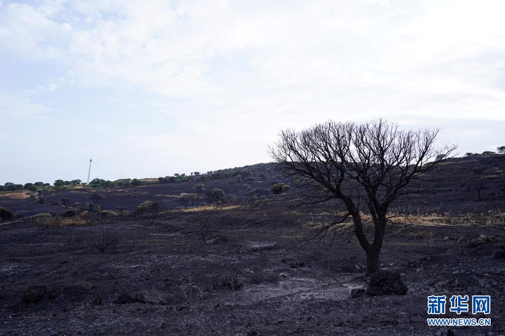 這是7月26日在意大利撒丁島奧里斯塔諾拍攝的被燒毀的樹(shù)木。