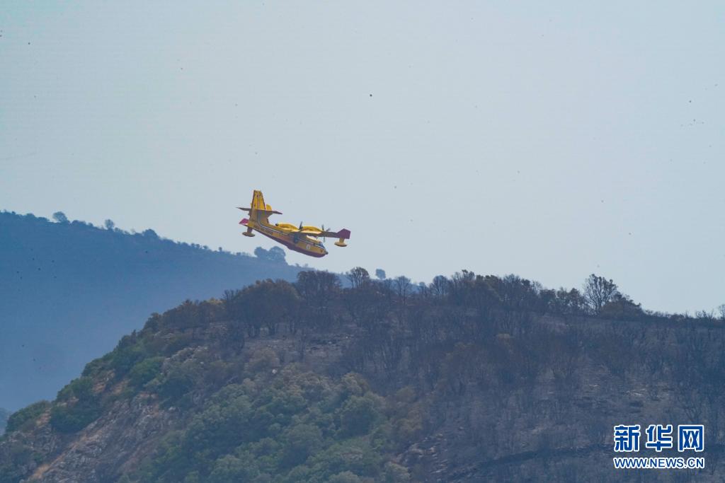 7月26日,滅火飛機在意大利撒丁島奧里斯塔諾參與滅火作業(yè)。
