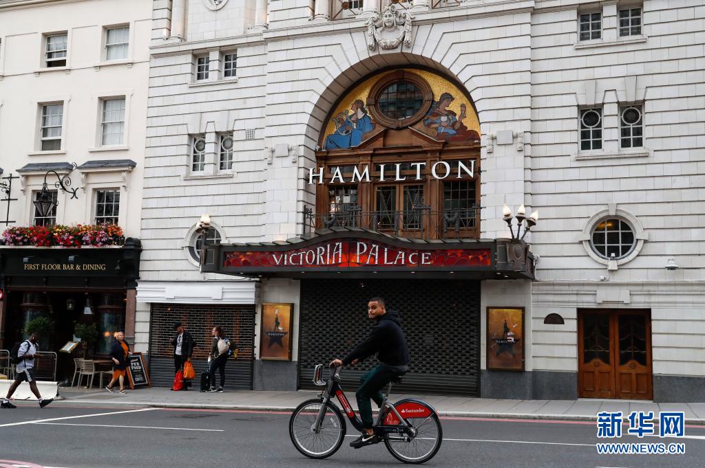 7月26日,人們從英國倫敦關(guān)閉的維多利亞宮劇院門前經(jīng)過。