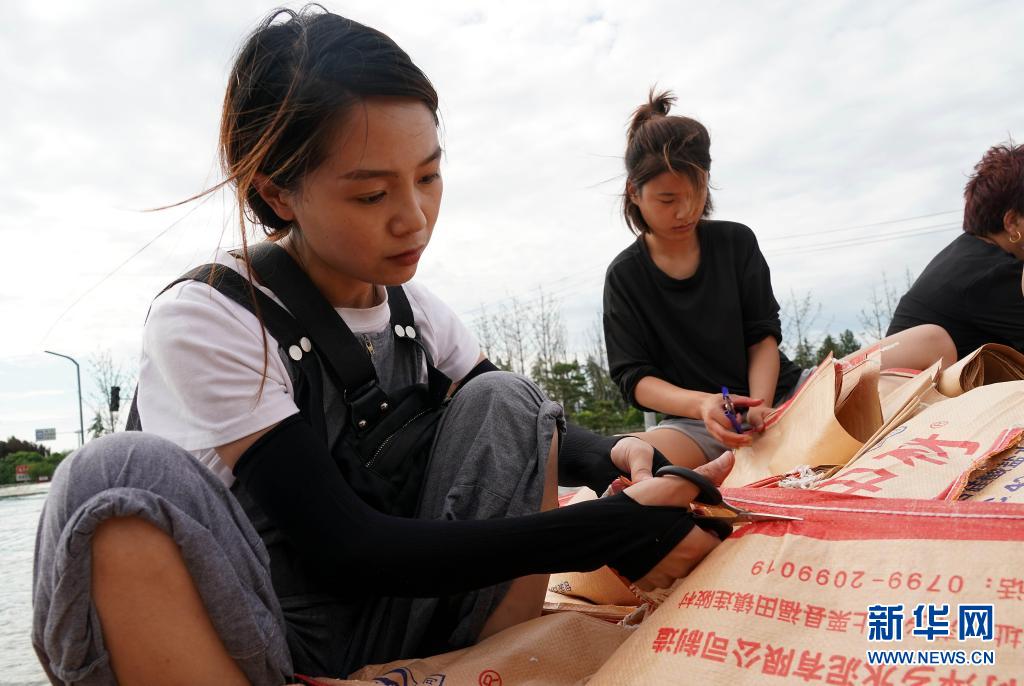 當(dāng)日,在河南省鶴壁市??h傅莊堤上,不少群眾自發(fā)前來(lái)和救援人員一起裝沙袋、運(yùn)沙袋,共筑堤壩。受持續(xù)強(qiáng)降雨影響,??h防汛形勢(shì)嚴(yán)峻,傅莊堤主要為??h縣城及26個(gè)村莊提供保護(hù)。新華社記者 李安 攝