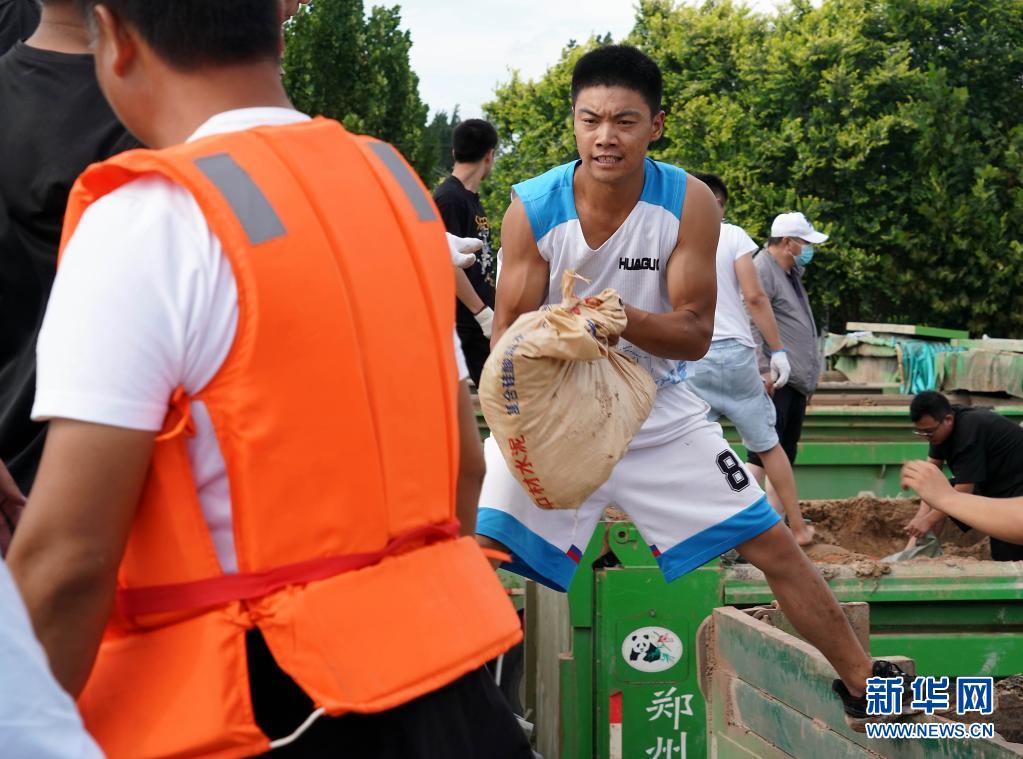 當(dāng)日,在河南省鶴壁市??h傅莊堤上,不少群眾自發(fā)前來和救援人員一起裝沙袋、運沙袋,共筑堤壩。受持續(xù)強(qiáng)降雨影響,??h防汛形勢嚴(yán)峻,傅莊堤主要為??h縣城及26個村莊提供保護(hù)。新華社記者 李安 攝