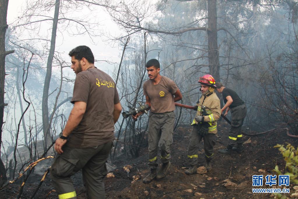 7月29日,黎巴嫩民防人員在阿卡爾省火災(zāi)現(xiàn)場滅火。