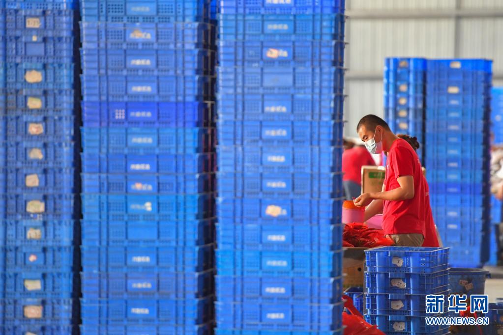 8月1日,在位于長(zhǎng)沙市望城區(qū)的湖南高星物流園,蔬菜倉(cāng)庫(kù)的工作人員將蔬菜裝筐。