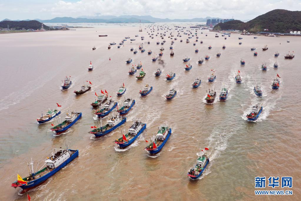 當(dāng)日中午12時,浙江沿海地區(qū)的部分漁船結(jié)束伏季休漁,駛出漁港,奔赴漁場。