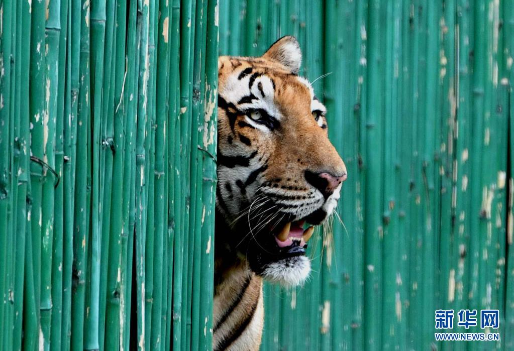 這是8月1日在印度新德里動(dòng)物園拍攝的孟加拉虎。