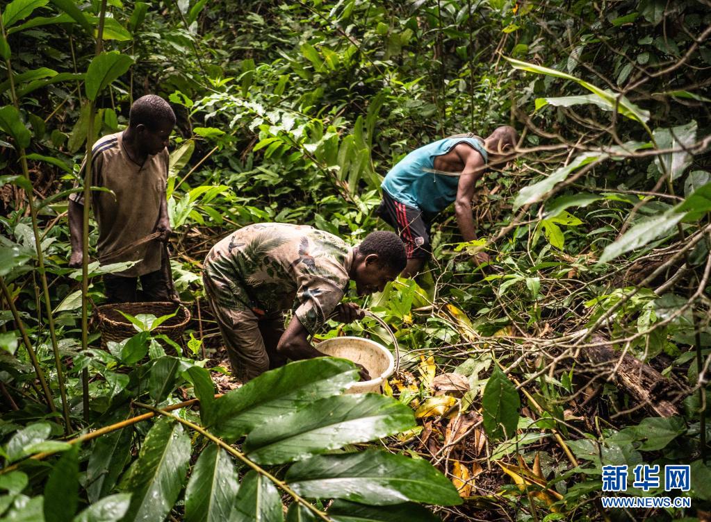 7月18日清晨,中非共和國(guó)洛巴耶省當(dāng)?shù)氐馁赂衩兹嗽谏掷镎蚁x子。